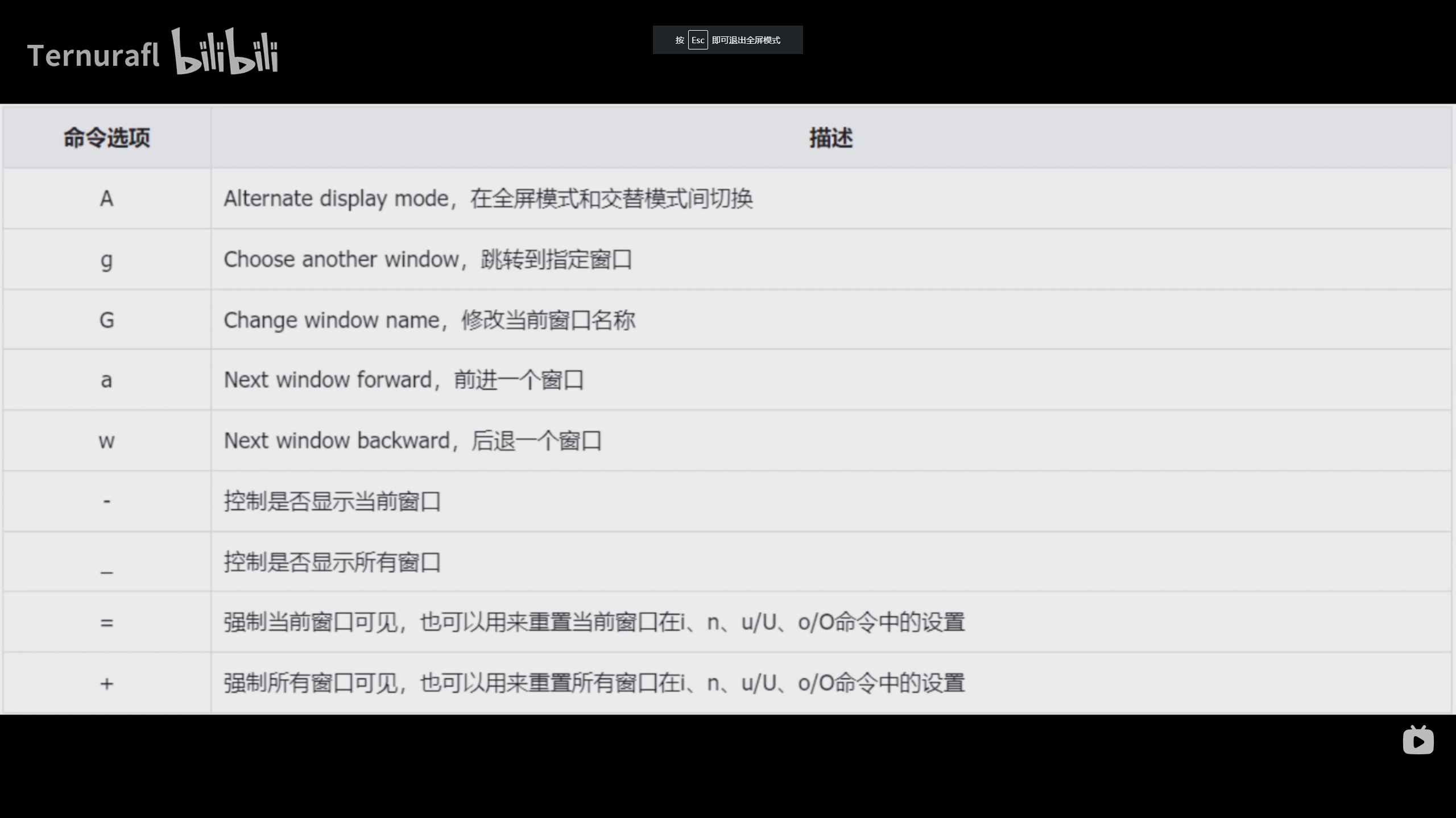 A Alternate display mode,在全屏模式和交替模式间切换